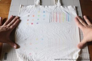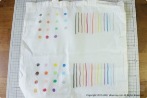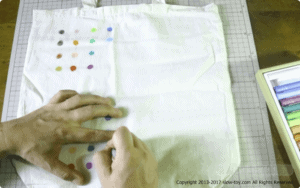 他のクレヨンにはないたくさんある楽しみ方があります。そのひとつが布製のなにかに色を塗ってそれを定着させれることです。その一例のとしてオリジナルエコバック作りです。